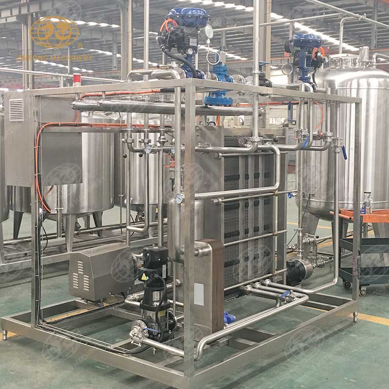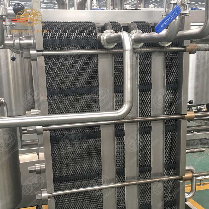 主要由板式换热器、平衡桶、输送系统、物料管路系统、蒸汽管路系统、热水系统、物料自动回流系统、温度自动控制、框架及电器控制系统等系统组成。